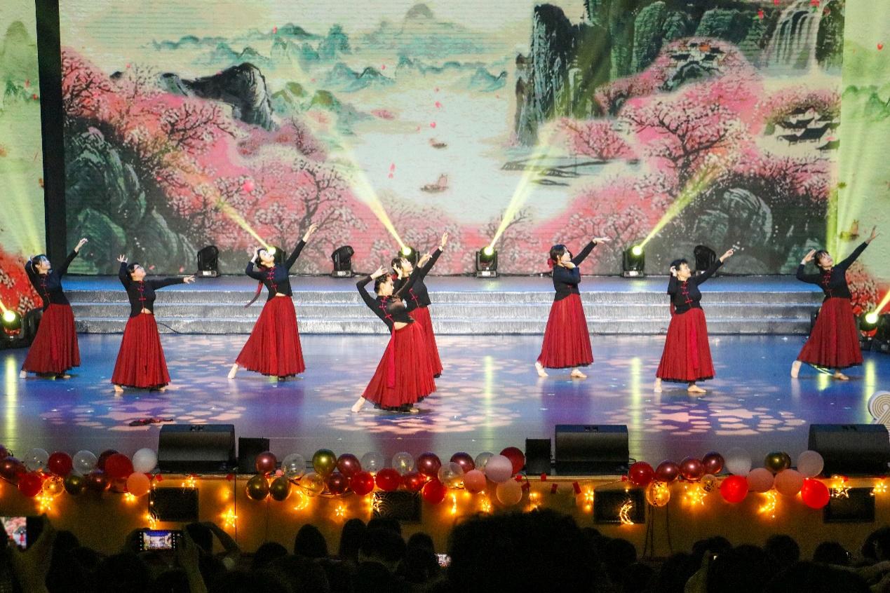 随着傣族音乐响起,一个个身着傣族服饰的姑娘们现身舞台,就如同“民族的就是世界的”这句话所说,这曲傣族舞蹈《嘎巴丽》牵动着每一个观众的心绪。舞蹈演员们每一瞥、每一转、每一跃无不体现着演员们的灵动与活泼,美不胜收。