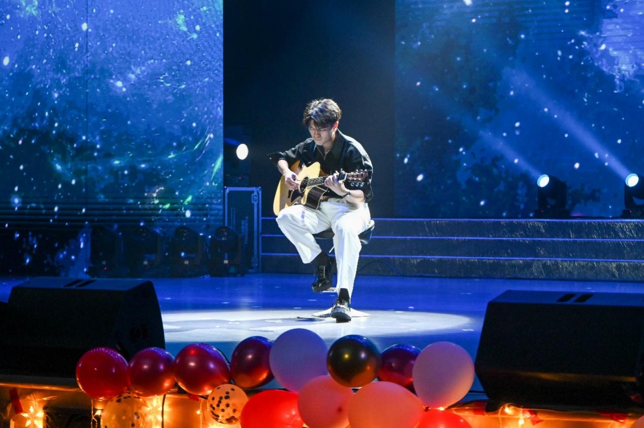 师生之谊,融化于老师与学生间的相处的点点滴滴中,学生对老师的赞颂将融于音乐中送给老师们。杨欣同学带来吉他独奏《like a star》,动人的琴声,抑扬顿挫,悠扬悦耳,表达着对师生谊的赞颂。
