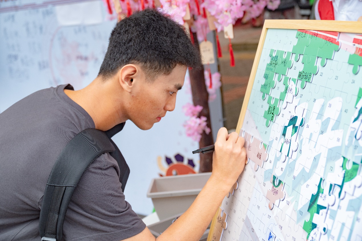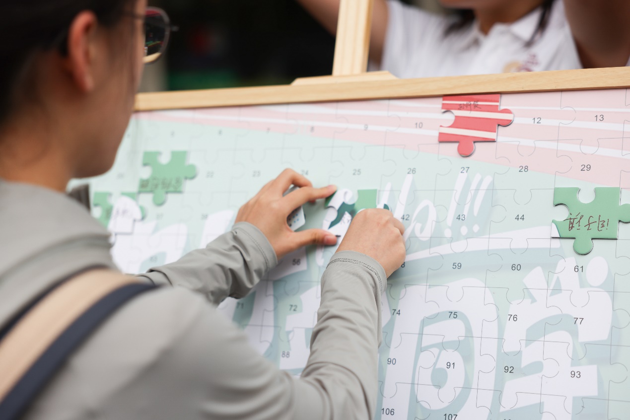 学院今年为新同学准备了很多别具一格、创意十足的欢迎环节,新同学签有自己名字的专属拼图,最终拼凑成了“欢迎新同学”的350vip浦京集团官网迎新图片。一个拼图一种身份,从此“金融人”的烙印深深的刻入了每一个2023级金院新生的心中。