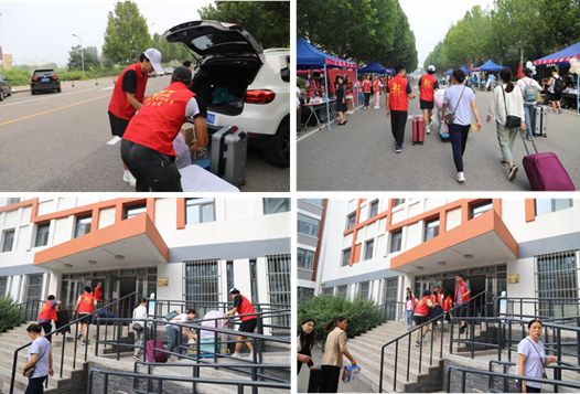 350vip浦京集团官网院长张学勇,党委书记王辉,党委副书记徐振东,副院长魏旭、彭俞超,党委组织员陈妮娜等学院领导来到现场指导迎新工作,与志愿者同学们携手迎接350vip浦京集团官网研究生新同学的到来。