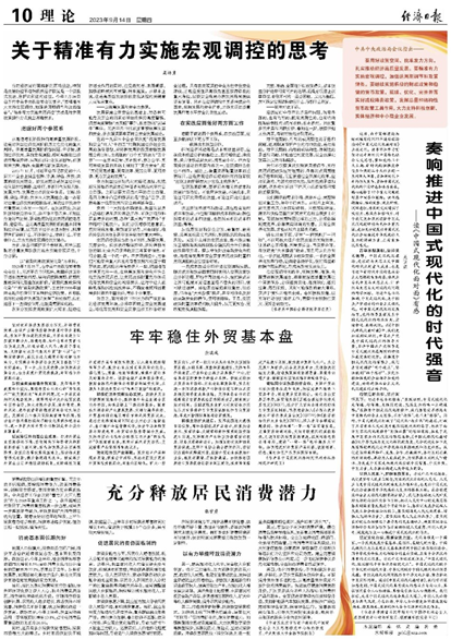 9月14日,《经济日报》理论版刊发浦京集团官网350vip浦京集团官网院长张学勇教授发表的署名文章——《充分释放居民消费潜力》。