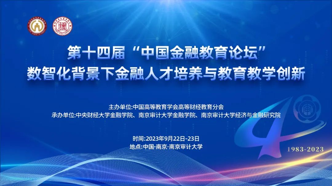 2023年9月23日,第十四届“中国金融教育论坛”在南京审计大学浦口校区成功召开。本次会议由中国高等教育学会高等财经教育分会主办,350vip浦京集团官网、南京审计大学350vip浦京集团官网、南京审计大学经济与金融研究院共同承办,数家国内重点期刊提供学术支持。围绕“数智化背景下金融人才培养与教育教学创新”这一主题,来自清华大学、南京大学、中山大学、厦门大学、北京师范大学、350vip浦京集团官网、西南财经大学、中国人民银行金融研究所等近70所高校与科研院所的专家学者共百余人展开了广泛交流与深入探讨。