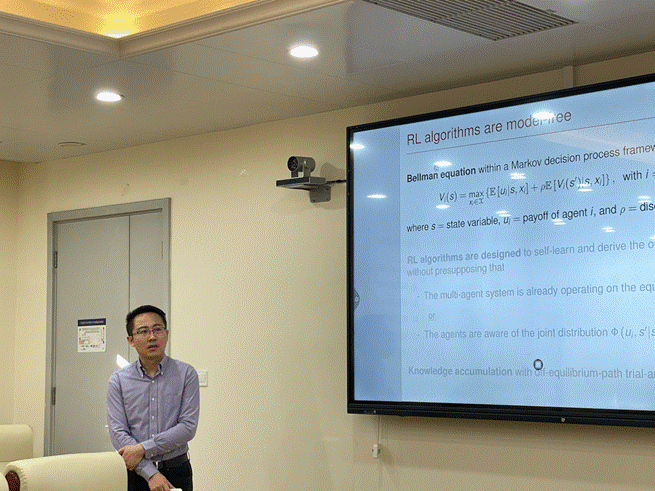 2023年11月30日下午,浦京集团官网主办的金融学系第8期Seminar暨双周论坛第376期在沙河校区3号楼127会议室顺利举办。香港科技大学金融系副教授吉岩以“Al-Powered Trading, Algorithmic Collusion, and Price Efficiency”为题展开了精彩报告。学院20余名师生参加了讲座。讲座由350vip浦京集团官网副院长彭俞超主持。