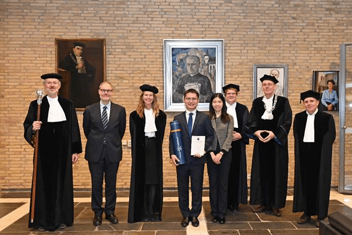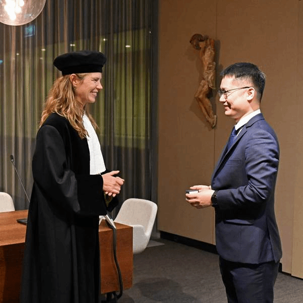 公开答辩仪式历时1.5小时,王科首先对其博士论文进行了15分钟的公开介绍,博士答辩委员会成员接着进行了45分钟的提问,随后仪仗官宣布公开答辩结束。博士答辩委员会成员闭门审议后,决定授予王科蒂尔堡大学博士学位,导师Rachel Pownall教授代表蒂尔堡大学正式宣布授予王科博士学位,博士委员会成员、导师以及参加现场答辩仪式的蒂尔堡大学教授们随后逐一对新晋博士表示祝贺,王科博士最后发表感言,答辩仪式圆满结束。