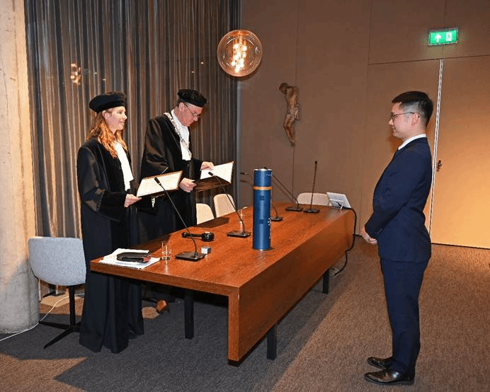 答辩仪式主席Harald Benink教授正式宣布王科获得博士学位