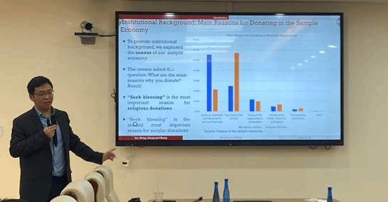 张宇副教授及其合作者通过利用捐赠交易层面的数据集,从宗教信仰的角度研究了捐赠行为。文章发现收入不确定性较高的个人更倾向于捐赠,尤其是宗教捐赠。这种模式与现有的捐赠解释并不一致,但可以用一种新的“精神保险(Spiritual Insurance)”渠道来解释。文章还发现捐赠会减少保险购买。此外,文章还使用水滴筹的数据发现,在捐赠界面添加精神保险短语的叙事能显著增加潜在捐赠者进行捐赠的可能性。这些研究结果均表明,宗教捐赠是应对收入不确定性和生活中其他不利冲击的精神保险。