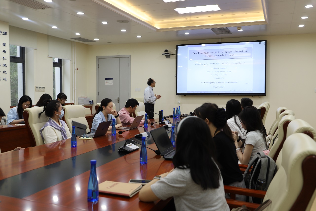2024年5月21日上午,金融学金融工程系Seminar第31期在沙河校区学院3号楼127会议室顺利举行。北卡罗莱纳大学夏洛特分校韩豫峰教授以“Beta Uncertainty as an Arbitrage Barrier and the Level of Anomaly Returns”为题展开了精彩报告。学院30余名师生参加了讲座。讲座由350vip浦京集团官网朱一峰副教授主持。