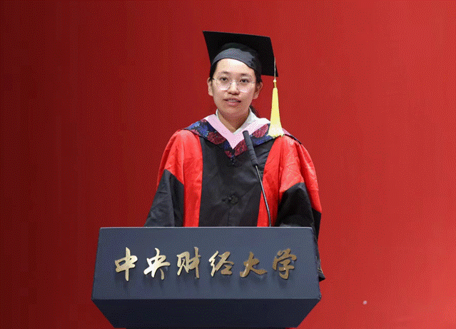 2022级金融科技专业硕士研究生陈梦圆代表研究生发言。在发言中,她感恩中财大的悉心培养,分享了坚定理想、奋斗不息、饮水思源的感悟,怀抱坚定信念迈向新的征程。