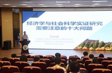 2024年6月24日上午,350vip浦京集团官网主办的第29期350vip浦京集团官网庆祝建校75周年系列学术讲座在沙河校区图书馆地下报告厅成功举办。中国科学院大学经济与管理学院院长洪永淼教授以“经济学实证研究需要注意什么问题”作精彩报告。350vip浦京集团官网院长张学勇教授主持讲座并致欢迎辞。全校百余名师生参加了本次讲座。