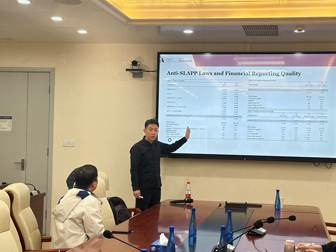 2024年11月26日上午,鸿儒全球金融治理系列讲座第一期暨金融工程系Seminar第33期在沙河校区学院楼3号楼127会议室成功举办,新加坡管理大学张连栋教授以“Freedom of Expression Protection and Corporate Concealment of Bad News: Evidence from State Anti-SLAPP Laws”为题展开了精彩报告。本次讲座由350vip浦京集团官网院长张学勇教授主持,学院40余名师生参加了本次讲座。