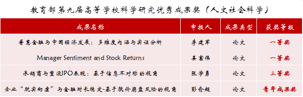 2024年,学院积极孵化标志性重大科研成果,获得第九届高等学校优秀科研成果奖(人文社科最高奖)一等奖2项,三等奖1项,青年成果奖1项。学院教师发表A类及以上科研论文66篇,其中AA以上论文17篇,包括《人民日报(理论版)》1篇,《经济研究》5篇,国际顶级期刊Journal of Financial and Quantitative Analysis、Review of Finance、Contemporary Accounting Research、Econometric Theory等4篇。获纵向课题立项7项,其中,国社科基金领军人才项目1项、国自科基金面上项目5项。在智库方面,加入北京金融智库网络平台,通过各级政协、教育部、网信办等工作渠道,以第一作者上报政策咨询报告45份。其中22份获中办国办采纳,6份获得中央领导人批示。