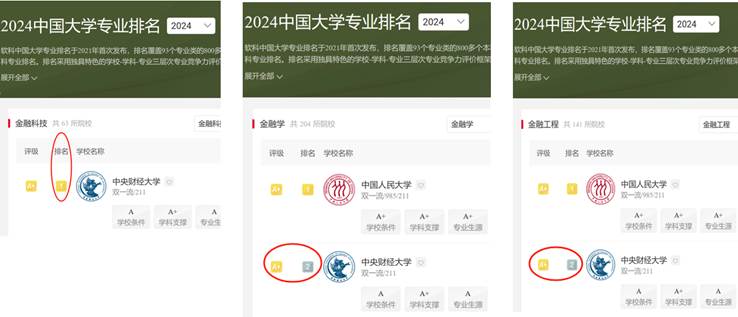 2024年,学院4名教师分别入选国家高层次人才和国家高层次青年人才项目,1名教师获评北京市教育系统“教书育人先锋”。2024年,“软科中国大学专业排名”学院全部专业继续保持全国前列,其中金融科技专业位居全国第一,金融学、金融工程位列全国前二。