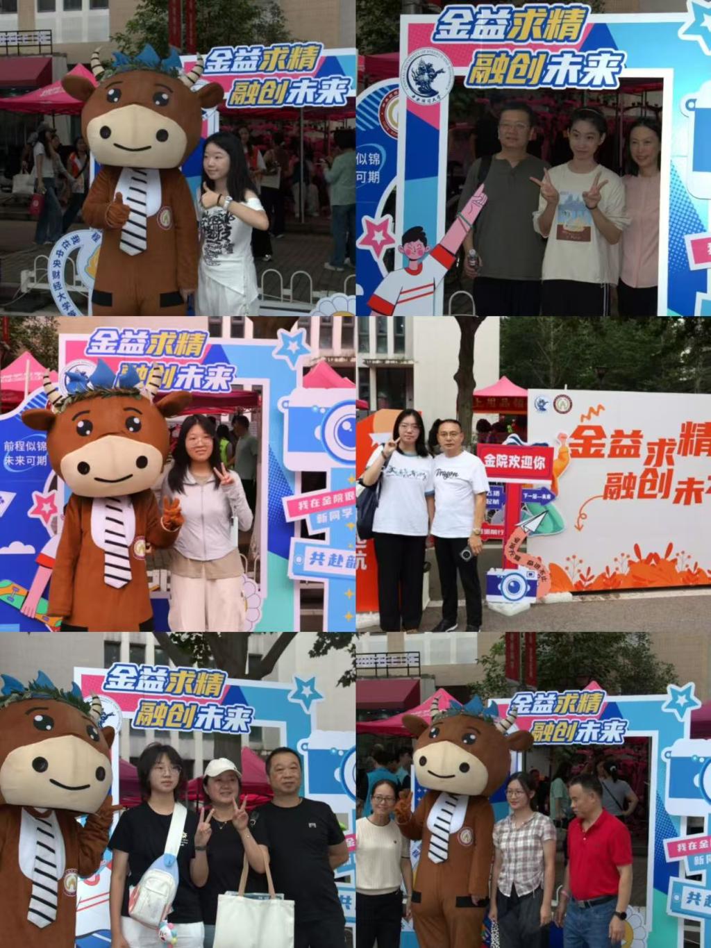 快看!那是学院吉祥物金小融!在金小融同学的陪伴下,大家在镜头前展露出了自信活泼的笑容。