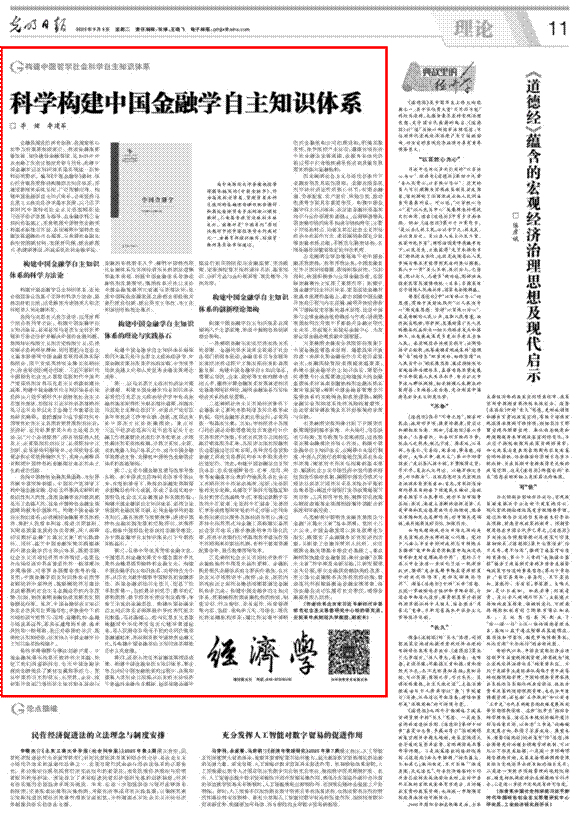9月9日,《光明日报》理论版刊发浦京集团官网李健教授以及副校长李建军教授题为《科学构建中国金融学自主知识体系》的署名文章。文章阐述了构建中国金融学自主知识体系的四梁八柱,包括其必要性、科学方法论、理论与实践基石以及创新理论架构。