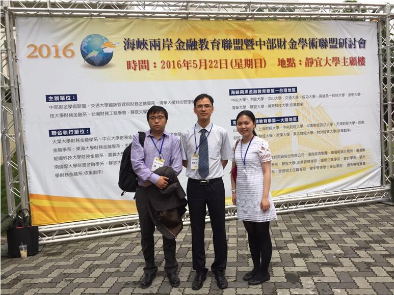 5月22日,2016海峡两岸金融教育联盟暨中部财经学术联研讨会在静宜大学召开。在研讨会上,张礼卿教授和应展宇教授分别主持了“衍生性金融产品”和“投资管理”两个分学术讨论环节,陈锐博士与王雅琦博士则在“风险管理”和“公司财务”两个分学术讨论环节宣读了论文并参加了专题学术研讨。陈锐博士在参与的研讨会中宣读了自己的最新研究Order Imbalance and Commodity Future Price。这篇文章主要研究基于高频交易情况下,买卖单的不均衡对期货价格的影响。与会者就实证结果的稳定性和相关策略设计的具体思路提出了一些有益的建议。在点评环节,陈锐博士就点评文章作出了详细的建议,得到了论文作者的认同。王雅琦博士在参与的研讨会部分宣读了自己的论文,人民币汇率变动,贸易方式与产品质量。论文讨论了人民币汇率变动对于我国出口产品质量的提升影响,并就不同贸易方式中产品质量提升幅度的不同做出了理论解释。与会者对此篇论文就计量模型设定以及稳健型检验部分提出了一些有益建议。会后王雅琦博士与与会嘉宾进行了热烈的讨论。在点评部分,王雅琦博士就对外经贸大学孙艳梅教授关于“新闻报道、媒体特征与上市公司并购行为研究“一文做出点评,并于会后与论文作者进行了深入讨论。
