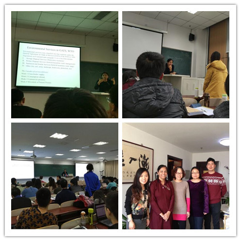 2015年12月7日,Sawhney教授参观了沙河校区东区主教楼401教室国际货币14的世界经济概论课堂,结合此次课堂国际金融服务贸易的议题,Sawhney教授做了一节课关于国际环境服务贸易的讲座,就国际环境服务贸易的定义、提供方式、统计、WTO的相关规定进行讲解,得到同学们的热烈反应和积极提问。12月8日上午,Sawhney教授在沙河校区西区403教室给350vip浦京集团官网2015专硕同学做了题为Renewable Energy Policy in India: Addressing Energy Poverty and Climate Mitigation的专题报告,此篇论文发表在牛津大学出版社的期刊杂志环境经济学与政策评论2013年6月期,涉及印度的能源形势、印度政府推动可再生能源发展措施、中国政府推动可再生能源发展措施以及中印对比。下午与国际金融系主任张碧琼教授做了交流。12月9日12:30-13:30,Sawhney教授在学院路校区350vip浦京集团官网913会议室做了题为Examining the regional pattern of renewable energy CDM power projects in India的讲座,作为350vip浦京集团官网第160期双周学术论坛(链接:http:/xwhd/xzhd1/93607.htm)。此篇论文发表在能源经济学期刊杂志2014年第42期。通过设定变量和模型,对印度清洁发展机制(CDM)项目在30个省和6个union territory的分布做了深度分析。12月10日14:30-16:00,Sawhney教授参观了350vip浦京集团官网气候与能源金融研究中心,就绿色信贷、碳市场、可再生能源发展等方面与中心的学者做了广泛交流。