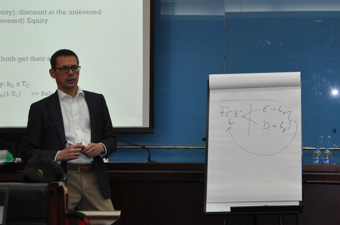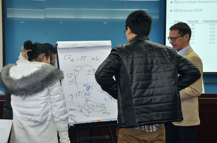 1月6日上午,在学术会堂702同学们迎来了Frans de Roon教授。在五天的课程中,教授结合案例生动地引入了公司财务管理的知识,就公司资本成本、现金流、资本结构等进行了深入的讲解。教授先就课程知识点进行讲解,然后进行案例分析,软件操作,最后给学生们案例自己操作练习。同学们练习时,教授时不时走下去进行操作指导并与同学们互动,极大提高了大家的学习效果。课间,同学们积极向教授请教、互相讨论。