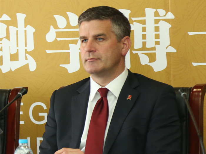 蒂尔堡大学校长Dr. K. M. (Koen) Becking表示感谢傅绍林书记的邀请,他提出今年恰好是两校合作的第二十年,这次金融学博士项目的开学典礼就是对两校过去二十年无间合作的最佳总结,他表示对于过去合作取得的累累硕果非常自豪。最后他祝愿所有的博士候选人学业顺利。