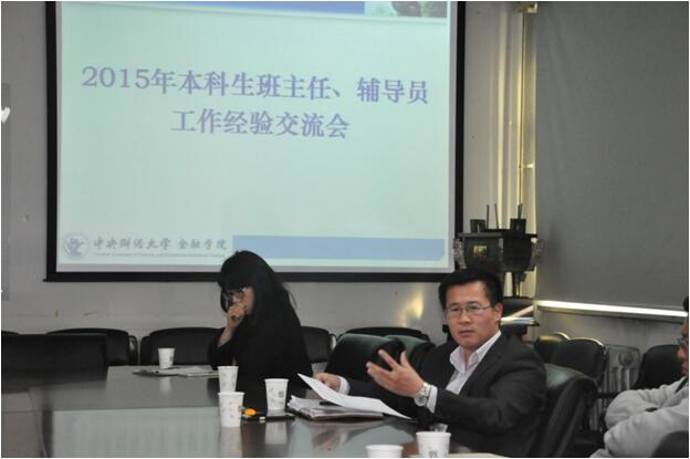 首先,王志梅老师代表学院简要介绍了2014-2015学年350vip浦京集团官网辅导员、班主任工作的总体情况。班级是大学生自我教育、自我管理、自我服务的主要组织载体,辅导员、班主任是指导班级建设和学生成长成才的两支重要力量,350vip浦京集团官网一直非常重视两支队伍建设,积极探索服务于班级建设和学生共同成长的良性机制,形成了晒书会、金融日记、心理电影表演班会、班报、素质拓展等独具特色的班级活动。一学年以来,班级建设成果丰硕,2011级金融学二班获得“北京市先进班集体”,2012级金融工程一班获得“首都先锋杯优秀团支部”,2012级国际货币与国际金融班入选北京市“我的班级我的家”示范班级评选,多个班级获得了校级双优班集体、优秀团支部等校级荣誉。