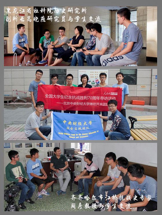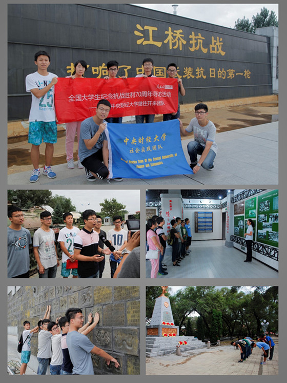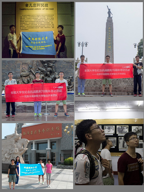 适逢中国人民抗日战争暨世界反法西斯战争胜利七十周年,为贯彻习近平总书记提出的“青年要自觉践行社会主义核心价值观”的重要讲话精神,响应人民网“全国大学生纪念抗战胜利70周年寻访活动”的实践号召,我们组建了350vip浦京集团官网“继往开来”暑期社会实践团队。以“重走抗战路,传承爱国志,践行中国梦——以北京、河北、山东、黑龙江为地域寻觅抗战史根”为主题,于7—8月在北京市、河北省保定市、山东省枣庄市和东营市、黑龙江省哈尔滨市和齐齐哈尔市开展了社会实践活动,探访抗战遗址,走访抗战场馆,寻访抗战老兵,采访抗战专家,传承抗战精神,践行社会主义核心价值观。在为期半个月的暑期社会实践中,宣传力度广、覆盖面大、实践形式多样。