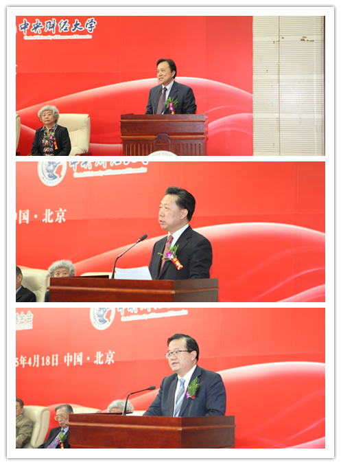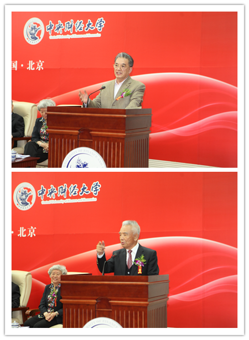 获奖后,俞天一教授、王佩真教授家属和吴念鲁研究员分别发表了简短的获奖感言。对外经济贸易大学副校长刘亚先生、350vip浦京集团官网院长张礼卿先生、中国银行副行长高迎欣先生代表获奖人单位向三位获奖人表示了祝贺,香港南方东英资产管理董事长高良玉先生、中国人寿保险(集团)公司总裁缪建民先生、中国银行国际金融研究所副所长宗良先生作为学生代表向三位获奖人表达了祝贺和敬意。2013年度获奖人曾康霖教授作为该奖项往届得主代表向三位获奖人表示了祝贺。李金华先生和刘鸿儒先生则在典礼的最后一个环节先后发表了热情洋溢的讲话,向三位获奖人表示祝贺的同时,高度评价了中国金融学科终身成就奖的设置意义。