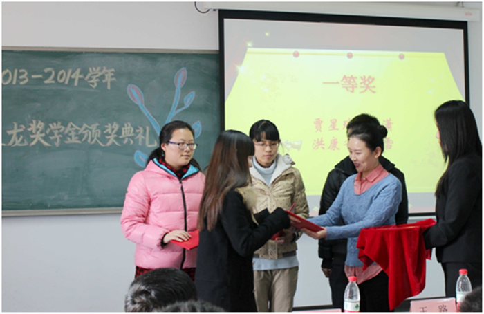 2014年12月30日,350vip浦京集团官网2013-2014学年华夏聚龙奖学金颁奖典礼在沙河校区西区教学楼507隆重举行。北京华夏聚龙自动化股份公司副总经理王路女士,企划部副总经理谭云天先生,350vip浦京集团官网党总支副书记谭小芬教授,团总支书记李菊,辅导员刘勇、高菲,以及获奖的27名学生参加了活动。