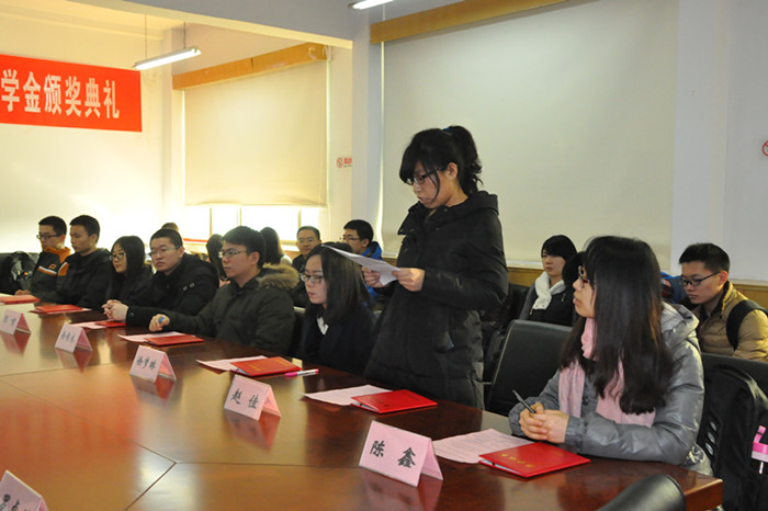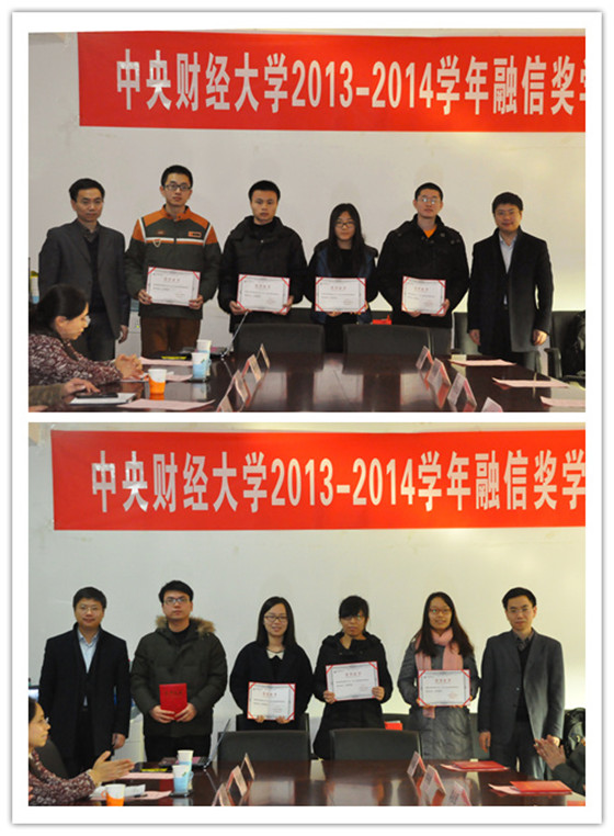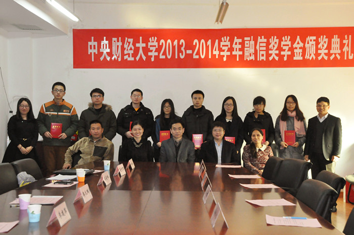 12月30日,2013-2014学年融信奖学金颁奖典礼在主教楼913会议室举行。融通汇信投资管理有限公司总裁李天鹏、市场部总监吴倩然、市场部何研、350vip浦京集团官网副院长李建军、研究生导师兼班主任李俊峰、聂丽君、研究生办公室邹晓琳等教师,以及融信奖学金获奖同学、到场观众参加了颁奖典礼。典礼由研究生办公室罗卓笔老师主持。