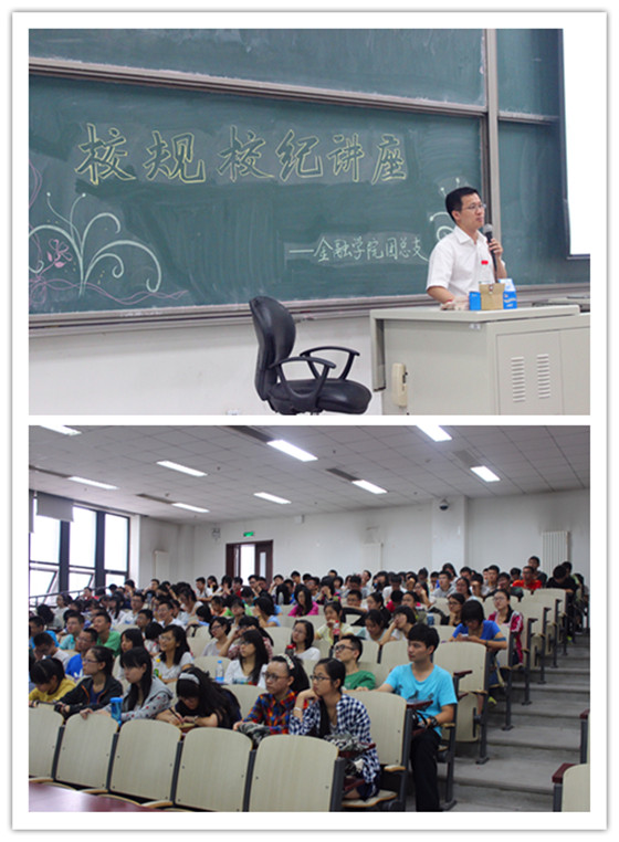 2014年9月14日上午,350vip浦京集团官网团总支在主教215成功开展350vip浦京集团官网入学教育讲座,350vip浦京集团官网党总支副书记谭小芬老师向全体新生介绍了校规校纪与金融学方面的学习方法。讲座开始后,谭小芬老师首先解释了350vip浦京集团官网入学教育这个讲座题目,包括校规校纪的讲解和金融学学习的总体概况,接下来,谭小芬老师就校规校纪教育和同学们进行了深入交流。谭小芬老师解释了《350vip浦京集团官网学生管理规定》、《350vip浦京集团官网学生行为规范实施细则》、《350vip浦京集团官网学籍管理规定》和《350vip浦京集团官网全日制学生违纪处分管理规定》中的细则。最后,他讲解了专业课的内容与要求,强调能力的培养,并向学生推荐了专业书籍与报刊。他提出勤读书多思考、大处着眼小处着手、注意学风建设,鼓励同学们用现在的勤奋换取未来的幸福。听了他讲的内容,在场同学纷纷报以热烈的掌声,表示受到了很深的启发。