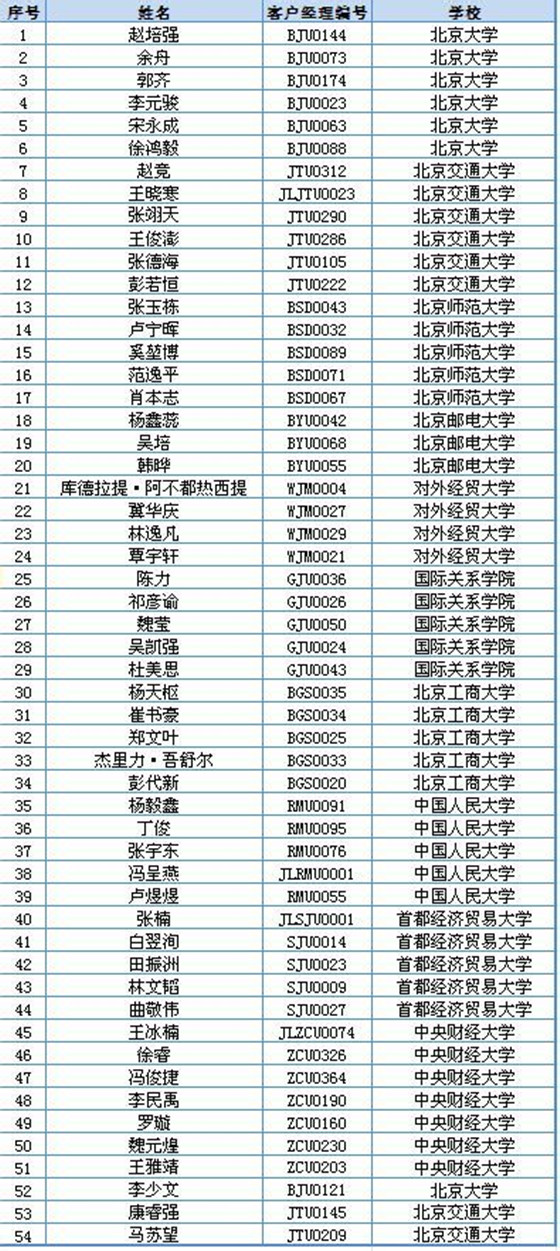 第一届北京高校“嘉实杯”模拟基金经理大赛以嘉实基金搭建的虚拟交易平台为依托,以建立的虚拟基金市场为比赛环境,参赛者分为基金经理参赛者与投资人参赛者,每位投资参赛者都拥有10万元的虚拟资本,只能选择一名基金经理投资,选定后全部资金交付基金经理管理。基金经理参赛者需要募集投资人参赛者手中的模拟资金,再进行模拟资金管理和投资。参赛者需要运用已有的专业金融知识,较强的分析能力和经济头脑在模拟市场中实践、锻炼、学习、成熟。“基金经理”需要较敏锐地抓住核心经济信息,运筹帷幄,努力整合手中资源,灵活运用专业知识,为团队创造最大化效益。而“投资人”需要保持冷静头脑,以经理为团队灵魂,在模拟市场中理性投资,同时不忘关注投资对象的发展前景。通过这次比赛,同学们投过虚拟平台参与到资本市场的实践操作中,在合作与竞争中真正领略到了金融领域的魅力。