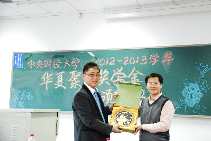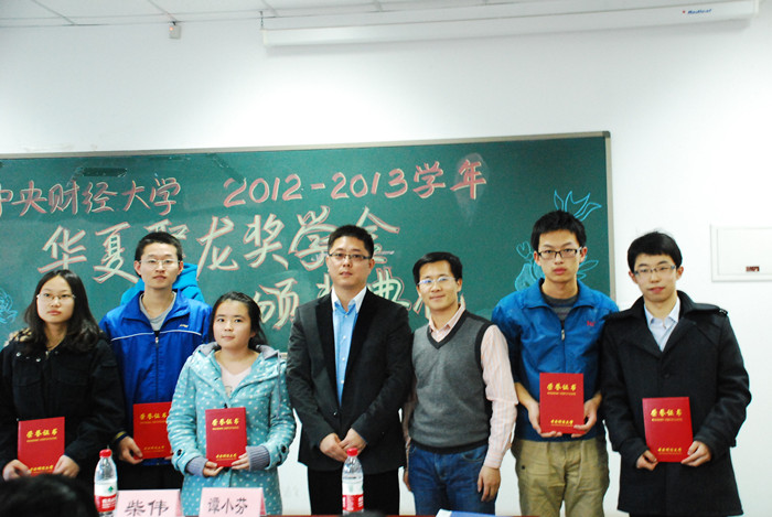 接下来进入最激动人心的颁奖环节,谭小芬副书记宣读《关于颁发350vip浦京集团官网2012—2013学年华夏聚龙奖学金的通知》,并与柴伟总经理共同为27名获奖学生颁奖、留念。