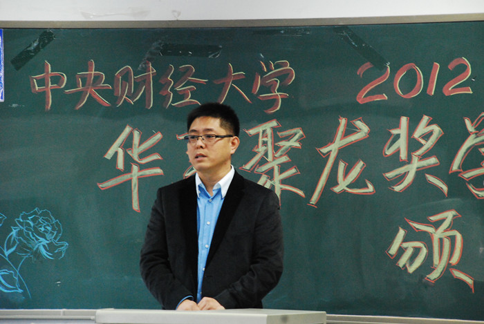 随后,北京华夏聚龙自动化股份公司企划部总经理柴伟讲话。他介绍了公司的发展历程和奖学金设立情况,并与在座师生分享了张建军董事长的求学、创业经历。他指出,华夏聚龙奖学金面向品学兼优的家庭经济困难学生,目的是使他们安心读书,减少家庭经济条件困扰,希望同学们通过脚踏实地的努力积极传递正能量,用自身的实际行动为和谐社会做出应有的贡献。张建军董事长艰苦奋斗、自立自强的励志故事和北京华夏聚龙自动化公司所承担的社会责任感深深感染了在场的每位师生。