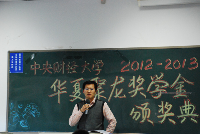 谭小芬副书记首先代表学院对奖学金资助方——北京华夏聚龙自动化股份公司在学校人才培养方面所做的贡献表示由衷的感谢,向获得2012-2013学年华夏聚龙奖学金的同学表示热烈的祝贺。他指出,在奖学金颁发第三个年头,我们很欣慰地看到获奖同学的平均绩点从2010-2011学年的3.3提高到2012-2013学年的3.76,成绩提高幅度明显;10名已经毕业的获奖本科生中,70%的学生赴密歇根大学、浙江大学等国内外名牌高校就读,30%的学生进入国企和公务员系统,就业质量稳步提升。学生成长成才离不开公司等社会资源的大力支持和帮助,希望同学们再接再厉、奋发图强、学会感恩、懂得奉献,用优异的成绩服务社会、回报社会,早日成为国家的栋梁之才。