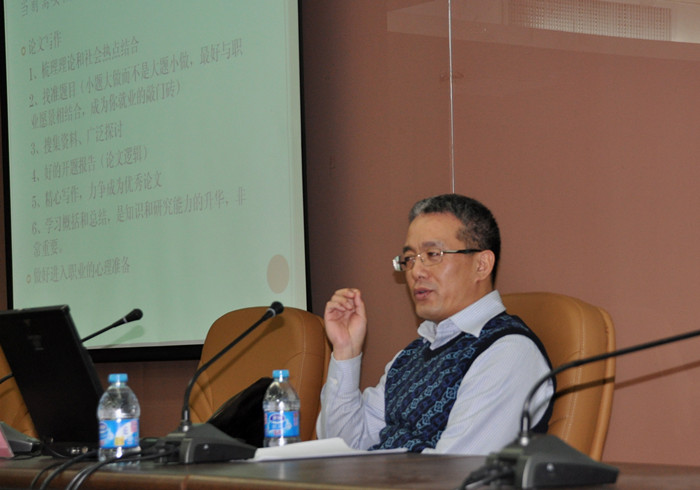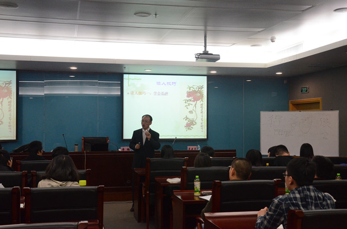 10月15日,中国银行总行高级经理、《国际金融研究》高级编辑李楠先生做客第十期“金融街论坛——MF金融职业人讲坛”(以下简称“讲坛”),为同学们带来题为《国学智慧与成功者的心志修炼之道》的讲座。350vip浦京集团官网李建军副院长主持讲座。