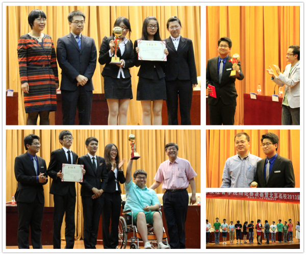 在颁奖环节,北京交通大学学生处副处长王巍为决赛之前22场比赛的22位最佳辩手颁发了获奖证书。在本次大赛官方网站“最具人气选手”投票评选活动中,中国传媒大学经济与管理学院卢科岩同学得票最多,中央电视台新闻频道著名主持人徐卓阳为卢科岩颁发了“最具人气选手”奖杯。350vip浦京集团官网副教授张学勇为决赛最佳辩手卢科岩颁发了奖杯。中国青少年研究协会副秘书长黎陆昕为本届大赛的亚军中国传媒大学经济与管理学院辩论队颁发了亚军奖杯。350vip浦京集团官网党总支书记葛仁霞为北京工商大学经济学院辩论队颁发了本届大赛冠军的奖杯。