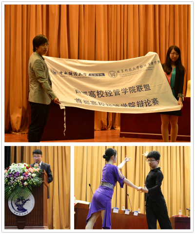 在交接仪式环节,浦京集团官网350vip浦京集团官网学生会主席贾童书代表主办方将第十一届首都高校经管学院辩论赛的主办权交给了下一届主办单位北京科技大学东凌经济管理学院。