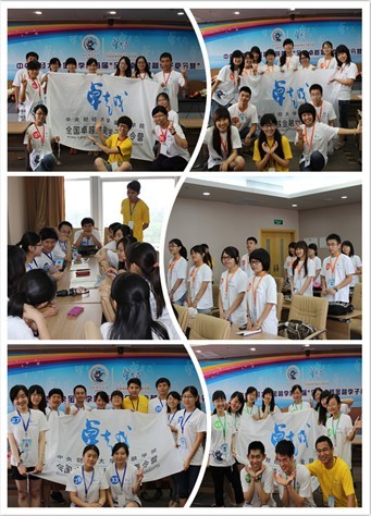 五彩的拉花,连串的气球,装点出会场喜悦祥和的气氛;由营员和工作人员的服装皱褶而成的两只蝴蝶,蹁跹于舞台帷幕之上,预示着夏令营与营员的美好未来;全体营员、教师、工作人员佩戴黄色腕带,将彼此的心串连牵绕在一起;在紧张的活动与测评之余,细致而精心地编排节目,营员的智慧与努力尽为彰显……