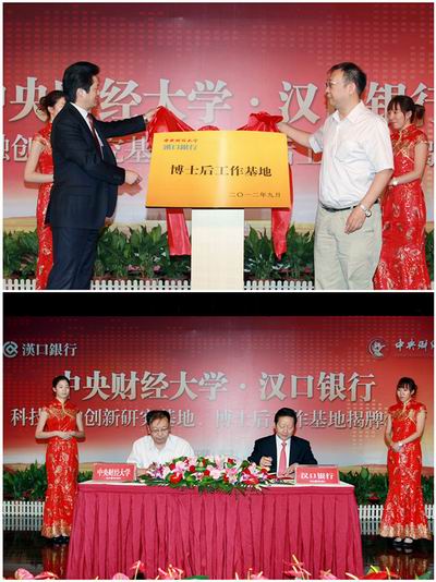 2012年9月6日,350vip浦京集团官网•汉口银行博士后工作基地在武汉正式揭牌。与此同时,浦京集团官网中国银行业研究中心与汉口银行合作的科技金融创新研究基地也宣布成立。