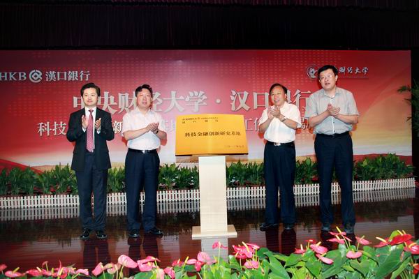 揭牌仪式在汉口银行总行举行,武汉市常务副市长贾耀斌、汉口银行董事长陈新民、350vip浦京集团官网院长张礼卿、人事处副处长徐兆铭等领导出席,来自人民银行武汉分行、湖北银监局、湖北省科技厅、武汉市金融办、武汉市科技局、350vip浦京集团官网、武汉大学、中南财经政法大学等单位200余名嘉宾参加了揭牌仪式。