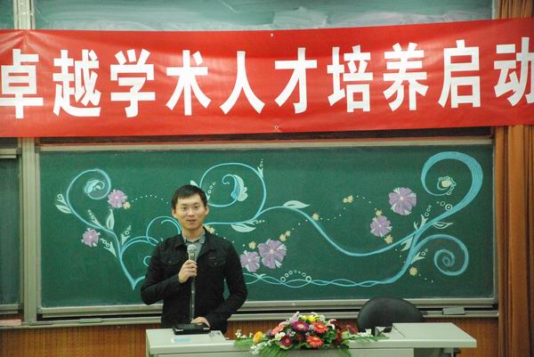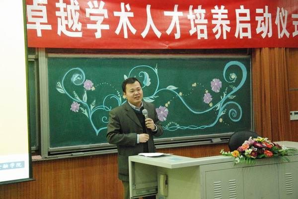 项目牵头人、指导教师代表张学勇老师发言,他指出“卓越是优秀的三次方,卓越承载着老师的期盼”,并强调了“期待”、“责任”、“卓越”等字眼所蕴含的深刻意义。此外,他还作为指导教师对同学们治学态度、思维训练、知识储备、论文撰写、科研方法等五个方面进行了严格要求。他说,卓越学术人才培养项目是个良好的开始,是通向未来更加卓越人生的垫脚石。