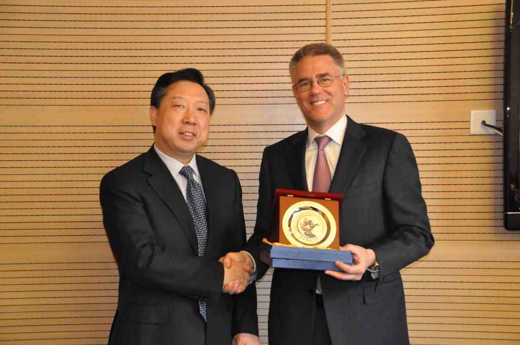 会谈期间,张礼卿院长与Currall教授就两院之间的学生交流、师资交流、联合会议和教育合作等方面交换了意见,双方都表示希望进行深入和实质性的交流与合作。会后,双方相互交换了礼物。张礼卿院长还陪同Currall教授参观了浦京集团官网图书馆、学术会堂、仿真实验室等办学设施。