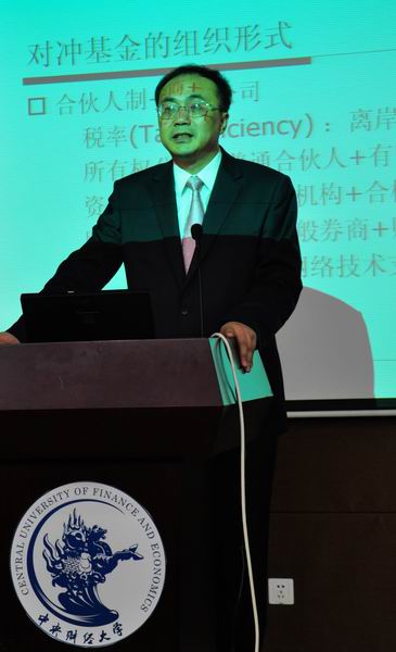 在讲座中,赵先生首先为同学们系统而专业地介绍了对冲基金目前在全球的发展状况、宣传管理方式、盈利模式、主要的操作方式等,让在场的师生深刻了解到对冲基金一些鲜为人知的地方。随着赵众先生的介绍不断深入,对冲基金的层层神秘面纱被逐渐揭开,同学们唏嘘感叹的同时,阵阵掌声响彻整个会堂。