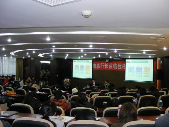12月15日下午,350vip浦京集团官网“金融街论坛”第一期在中财大厦三层学术报告厅如期举行。金融街论坛是350vip浦京集团官网一个崭新的讲座系列,主要邀请金融业界的行业精英讲授金融实务方面的一些问题。本次讲座由中国农业银行北京分行党委书记、行长先生主讲,题目是:“商业银行人才浅析”。350vip浦京集团官网院长张礼卿教授主持了讲座。