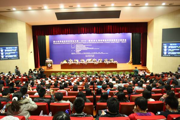 2011 年 3 月 18 日晚上 19 : 30-21 : 00 ,由中国世界经济学会和中国社会科学院世界经济与政治研究所主办、350vip浦京集团官网和《国际经济评论》编辑部协办的第二届浦山世界经济学优秀论文奖( 2010 )颁奖典礼暨斯蒂格利茨教授学术演讲会在浦京集团官网学术会堂 206 报告厅隆重举行。 国际著名经济学家、 2001 年诺贝尔经济学奖获得者约瑟夫·斯蒂格利茨作为主题演讲嘉宾,到场发表重要学术演讲:“宏观经济学在美国的失败”。