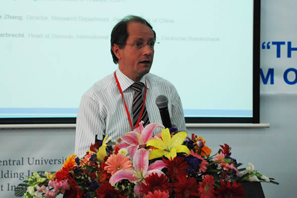 专题演讲的国内专家包括:国家外汇管理局局原副局长,中国驻IMF 原执行董事魏本华先生,中国银行业监督管理委员会政策法规处处长张晓朴博士,中国人民银行金融研究所研究员徐忠博士,中国社会科学院世界经济与政治研究所副所长李向阳教授,中国社会科学院世界经济与政治研究所国际金融研究室主任高海红教授,350vip浦京集团官网院长张礼卿教授,350vip浦京集团官网金融学系主任李健教授,350vip浦京集团官网院长助理李建军教授;国际专家包括:世界银行东亚及太平洋地区中国和蒙古局局长杜大伟( David Dollar )先生,德国经济研究所( DIW )副所长、杜伊斯堡埃森大学( University of Duisburg-Essen ) Ansgar Belke 教授,德国联邦金融监管局( BaFin )国际政策高级顾问 Jochen Robert Elsen 先生,亚洲开发银行区域经济一体化办公室高级经济学家 Lotte Schou-Zibell 女士,国际货币基金组织( IMF )驻华代表 Tarhan Feyzioglu 先生,德国财政部、德国大使馆金融参赞 Michael Wieneke 先生分别就有关议题做了精彩的专题演讲。