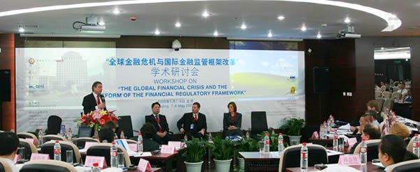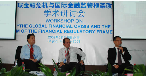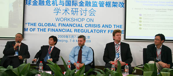 5 月 7-8 日,由浦京集团官网、德国开发研究院( DIE )、德国 InWEnt 国际继续教育与发展协会联合主办的“全球金融危机和国际金融监管框架改革”学术研讨会在中财大厦 3 层学术报告厅隆重举行。本次研讨会立足当前全球金融危机的背景,旨在讨论国内、国际金融监管框架改革,交流不同国家和地区的所采取的监管措施。讨论的专题包括:全球金融危机的成因、后果和教训、金融自由化的反思和对当前金融市场监管制度的改革,全球金融和经济危机对中国经济的影响,如何推进区域金融一体化和东亚监管合作,以及如何改革和稳固全球金融架构等问题。