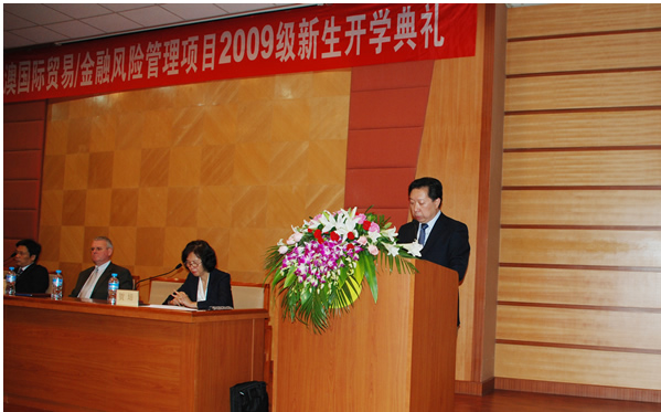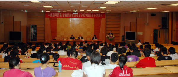 9 月 23 日下午 1 : 30 在浦京集团官网主教学术报告厅举行了中澳国际贸易/金融风险管理项目2009 级新生开学典礼。浦京集团官网副校长史建平教授、浦京集团官网院长张礼卿教授、党总支书记贺培教授、教务处长杨金观教授、外国语学院总支书记韩兰处长、国际合作处张小燕副处长、澳大利亚维多利亚大学商法学院副院长Jeffery Faux 教授、海外项目部经理 Sue Stanfford女士、海外项目经理助理 Rhette Miller先生 等人出席了开学典礼。浦京集团官网金融风险管理专业 2009 级新生 160 人参加了开学典礼。会议由党总支书记、中澳合作项目主任贺培教授主持。