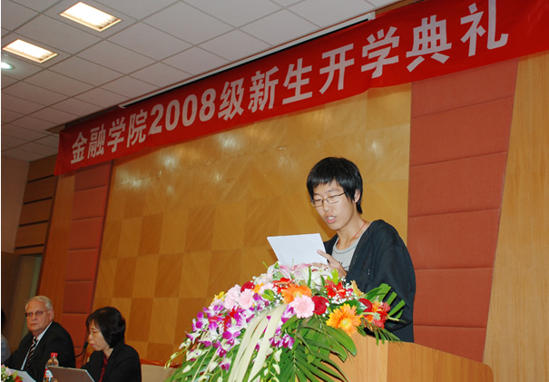 国际经济与贸易专业 国际贸易/金融风险管理方向1班新生代表发言。他表示,将继续发扬“忠诚、团结、求实、创新”的中财精神,树立崇高的理想和信念,不断提高自身素质,为学校的发展做出自己的贡献。