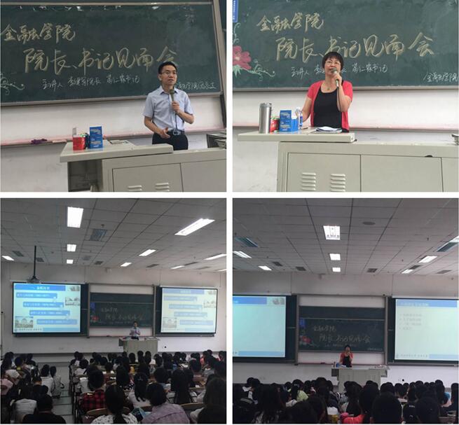领航服务,院长书记见面会:9月2日上午院长书记见面会在沙河校区东区主教216举行。李建军院长对学生们表示欢迎和感谢,并详细地介绍了学院发展历史、发展战略定位、学科建设成果、学院组织机构、师资队伍、人才培养、科学研究、社会服务、国际交流合作等内容,他对新生提出希冀和要求,希望他们经过在350vip浦京集团官网四年的学习和生活,成长为卓越金融人才。葛仁霞书记以“努力做青年时代先锋”为题向新生做了生动的思想教育,她通过我国建国以后取得的主要成就和中财大建校以来的主要成就以及国家发展战略,引出了浦京集团官网以“精英人才”为核心构建的人才培养目标,希望同学们从入学初开始,扣好人生的第一粒扣子,在中华民族伟大复兴的重要战略机遇期,把自己的梦想与国家梦、民族梦有机结合起来。