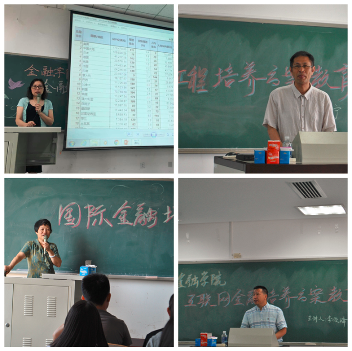 金融学专业培养方案教育会由左毓秀副教授主讲,她从不同方面剖析了大学生活与专业前景,从金融学的发展领域展开,分别对金融机构体系与金融市场体系进行讲解。金融工程培养方案教育会由李磊宁副教授主讲,他采用大量实例引出金融工程专业的学科特点,并详细阐述了金融工程专业课程设置的结构和培养目标。国际货币与国际金融专业培养方案教育会由张碧琼教授主讲,她从狭义与广义两个层面为新生解释了国际货币与国际金融的概念,结合了宏观与微观的金融学视角阐释了国际货币与国际金融专业的学科特点。互联网金融培养方案教育会由院长助理李俊峰副教授主讲,他指出互联网金融是新开设的专业,致力于培育新型金融业态运行模式的应用型创新金融人才。