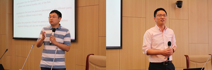 魏旭副教授的演讲主题是“债券流动性,债务到期与债券风险溢价”。论文从债券期限角度将流动性风险和展期风险联系起来,认为市场的流动性风险会影响到公司的展期风险,进而影响整个公司的债务成本。本文在长期债券的流动性风险和短期债券的展期风险基础上建立模型,得到最优债务期限结构,并得出债券流动性强弱会影响债券期限选择,继而影响到公司的展期风险,从而从外部的流动性风险和内部的展期风险渠道影响债券的风险溢价。王勇副教授对魏旭副教授的论文进行了点评。他认为债务期限结构是MM定理的一个扩展,该期限结构将风险溢价进行分解,从短期债券展期风险和长期债券流动性两者间的平衡入手,得到最优债务期限结构。同时他从引入清算价值可能会引起长期债务的挤兑行为,新老债优先级顺序以及流动性冲击等方面提出建议。